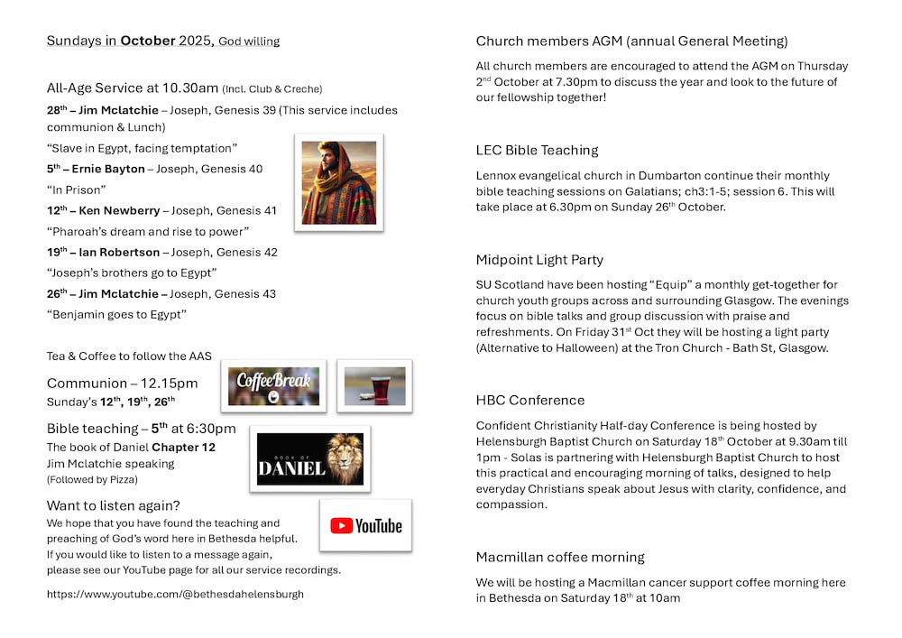 - On the first Sunday of the month the All Age Service will conclude with communion as part of the service